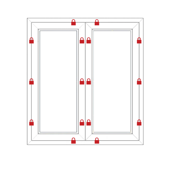 Ogni anta è equipaggiata con 5 riscontri antieffrazione, progettati per offrire una protezione efficace contro i tentativi di intrusione.